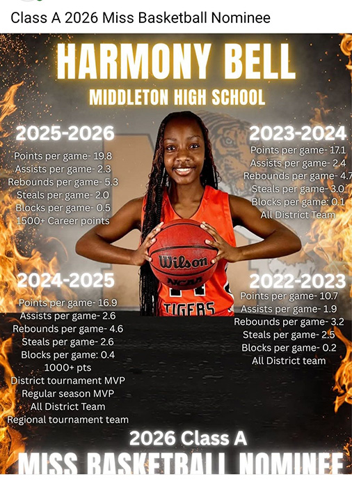 Although we are not surprised, we are still impressed by Middleton High School basketball player Harmony Bell, who was named a Class A 2026 Miss Basketball nominee. Her stats alone cannot be ignored, which undoubtedly led to her nomination. The 2025/2026 season for Bell, who committed to Simmons College of Kentucky earlier this year, has become one major milestone in her basketball career.