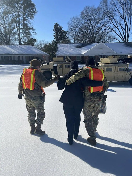 Across Shelby County, in addition to supporting the Memphis Safe Task Force, Guardsmen have been responding to storm-related emergencies. Since Saturday, they have helped more than 20 stranded citizens, recovered nearly 220 stranded motorists, and assisted with the establishment and management of warming centers across the city. They also transported and ensured that more than 280 emergency and health care employees were transported to area hospitals and emergency management centers.